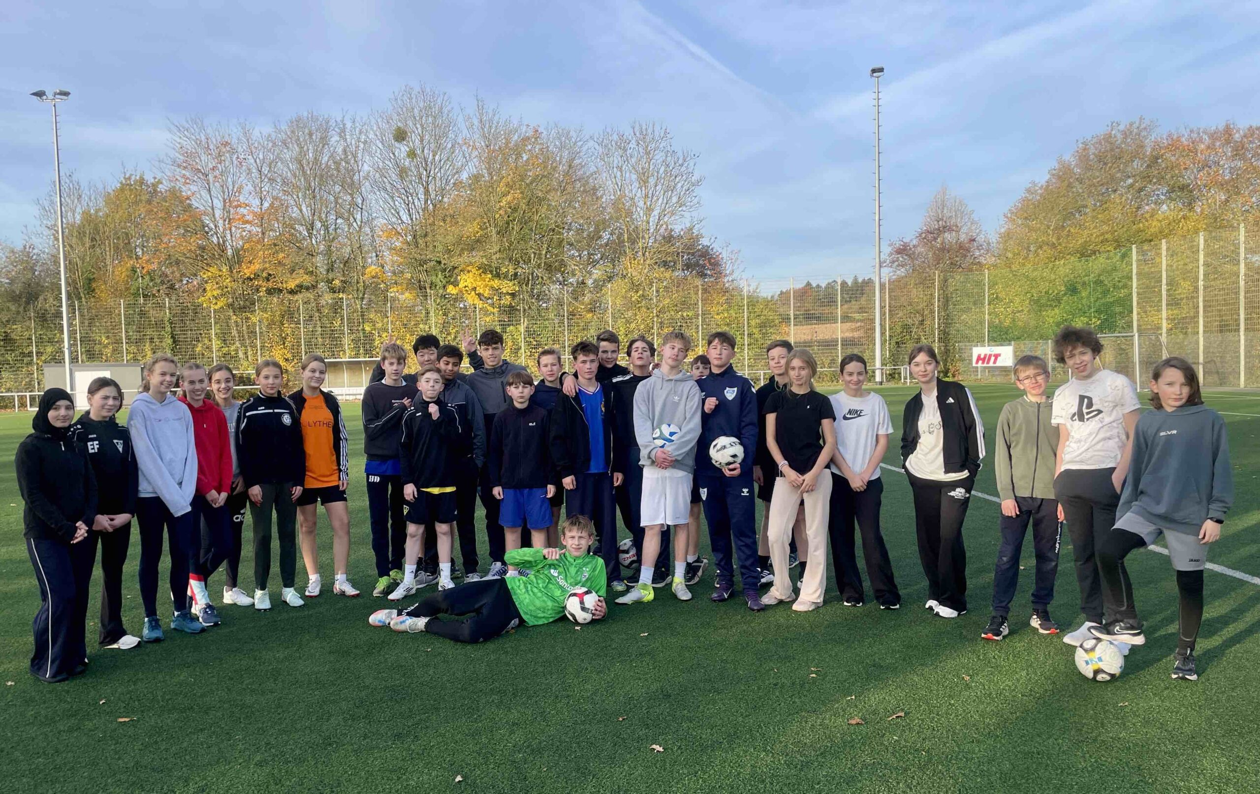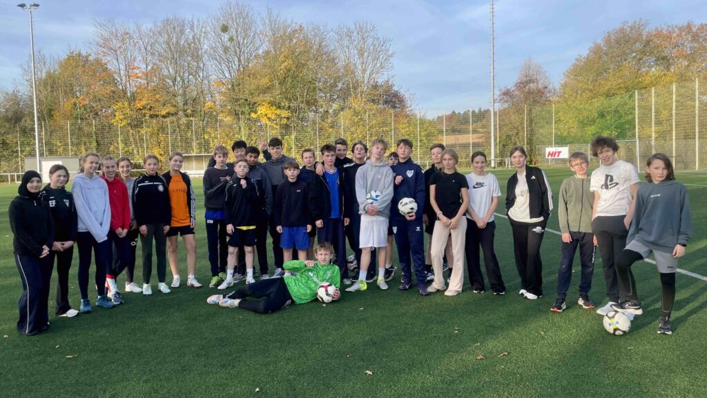 Ein außergewöhnlicher Gast sorgte am 06.11.25 für Begeisterung auf dem Kunstrasenplatz des Anne-Frank-Gymnasiums: Faton Ademi, Profispieler bei Alemannia Aachen und kosovarischer U21-Nationalspieler, besuchte die Klasse 8c und leitete eine besondere Fußball-Trainingseinheit.