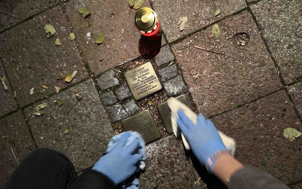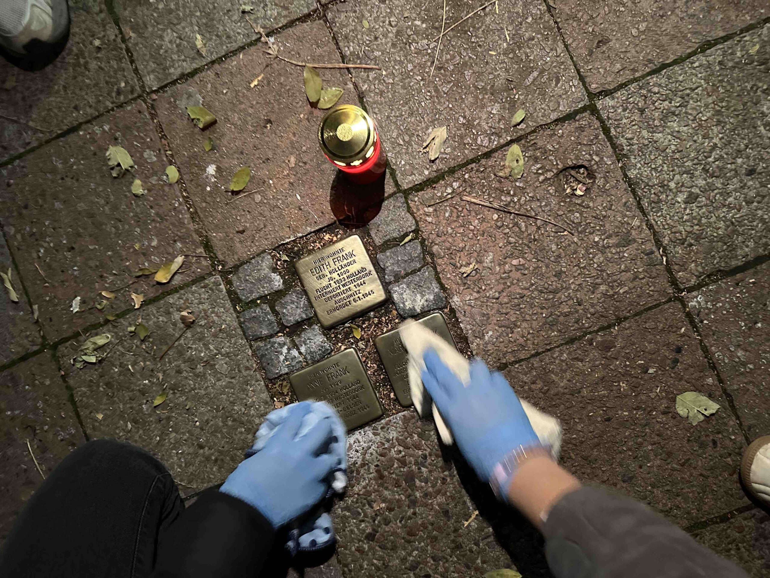 Das AFG hat die Patenschaft über drei Orte mit insgesamt fünf Stolpersteinen übernommen, darunter Steine für Anne Frank, ihre Schwester und ihre Mutter, die auf der Flucht in die Niederlande eine Zeitlang in Aachen lebte. In diesem Jahr trafen sich am Nachmittag des 13. November einige Vertreter*innen der beiden Geschichts-Grundkurse der Q1 in der Stadt, um die Steine an zwei dieser Orte zu reinigen. Vielen Dank für das Engagement! „Mögen die Opfer des Nationalsozialismus nie in Vergessenheit geraten!“