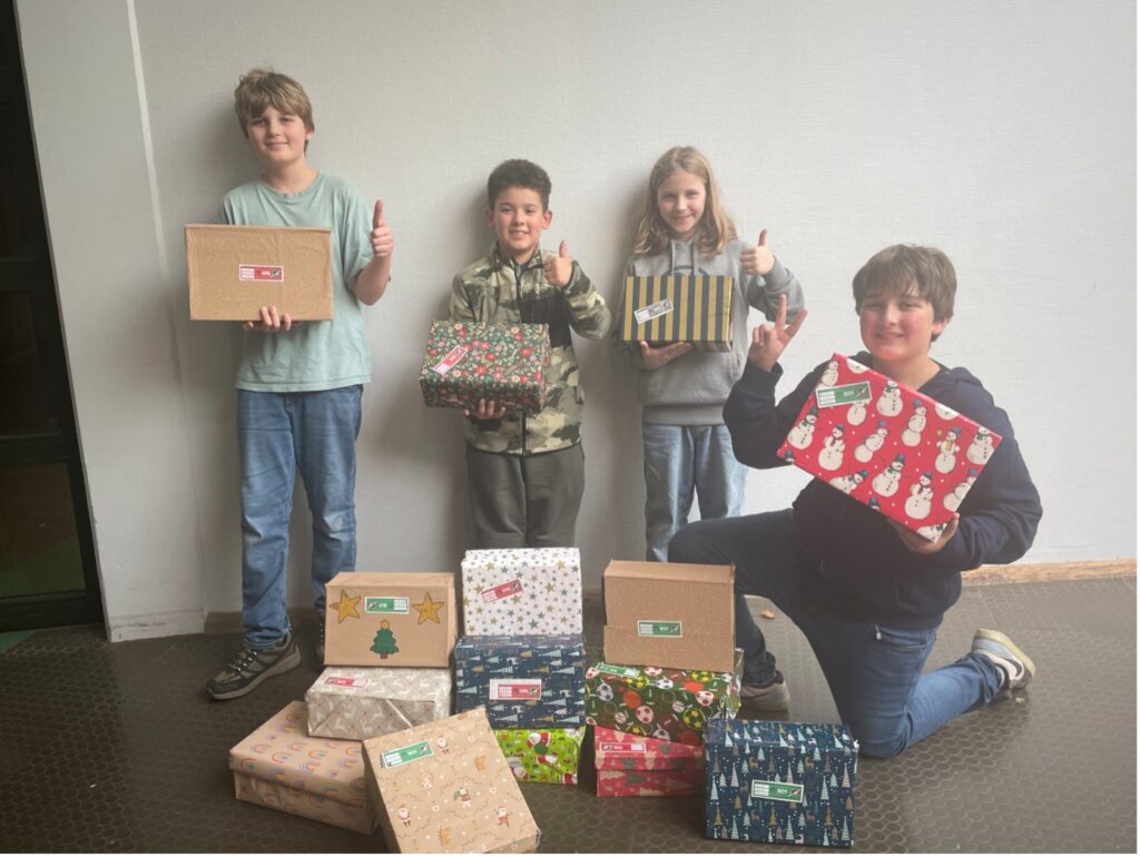 Auch dieses Jahr hat unsere Schule wieder ein großes Herz gezeigt: 22 Schuhkartons wurden für Kinder, die kein Geschenk unter dem Weihnachtsbaum erwarten können, gepackt. Die bunten Kartons werden an Kinder in Osteuropa gesendet. Jede Klasse konnte mitmachen und selbst überlegen, obsie einen oder mehrere Kartons packen und gestalten mochte. So wurde es bereits im November schon ein bisschen weihnachtlich…