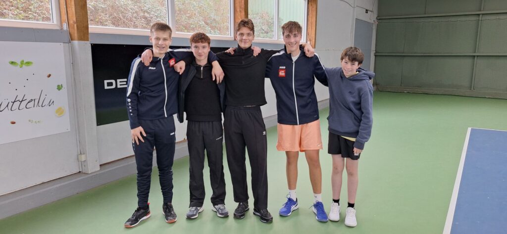 Am 1.12. spielten das Inda, Pius, Einhard und AFG den Stadtmeister aus. Trotz großem Einsatz wurden beide Spiele verloren. Hervorzuheben ist die die Leistung von Jona Page, der sein Einzel gewann. Stadtmeister wurde das Pius, gegen das wir im Halbfinale verloren hatten. Betreut wurde die Mannschaft von Herrn Esser. Von links nach rechts: Felix Richlowski, Ben Bosman, Leon Uvalic, Jona Page, (alle Jgst. 10), Lukas Engelhard (Jgst. 9)