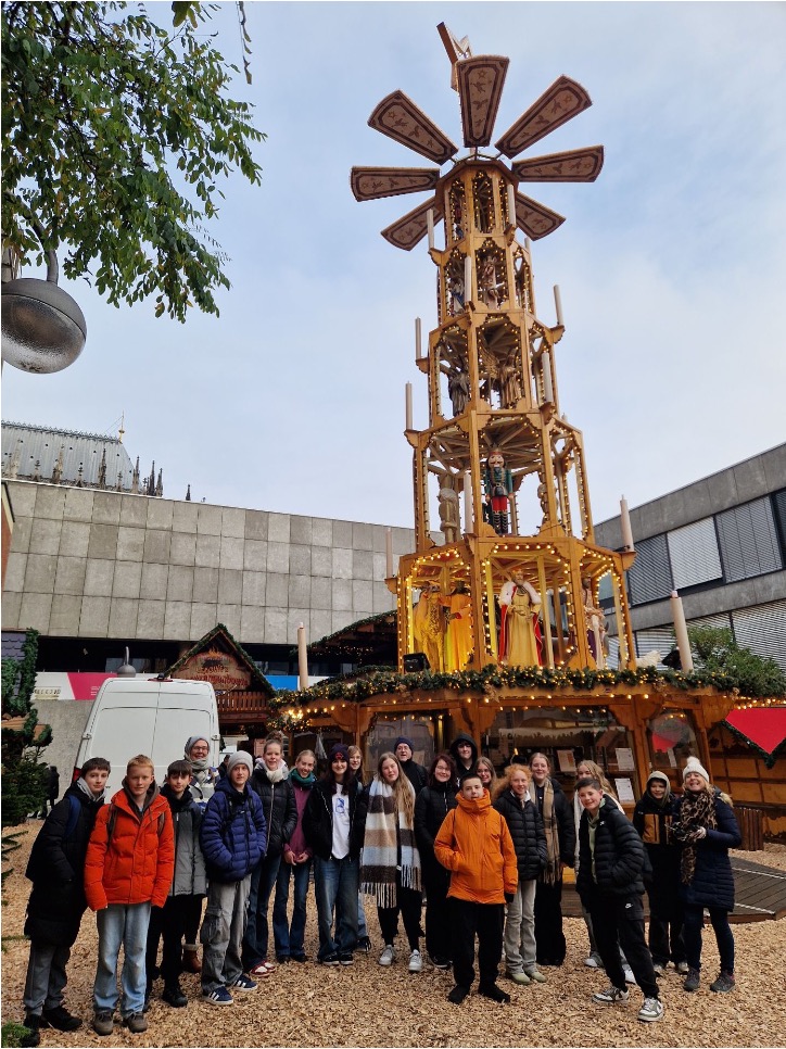 Donnerstag sind wir alle zusammen mit dem Zug nach Köln gefahren. Schon auf der Fahrt hatten alle viel Spaß! Eine besondere Erfahrung war es auf englisch Spiele wie „Impostor“ oder „Wer bin ich?“, zu spielen. Als wir in Köln angekommen sind, haben wir als erstes den Kölner Dom besichtigt. Anschließend waren wir im Schokoladenmuseum. Dort haben wir viel über die Herstellung von Schokolade gelernt und konnten viele verschiedene Schokoladensorten probieren.
