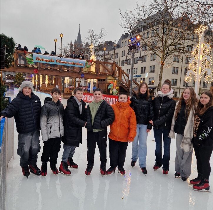 Danach hatten wir viel Freizeit in Köln. Während eine Gruppe shoppen gegangen ist, sind die anderenEislaufen gegangen. Das wahr sehr lustig! Während die Mädchen sehr gut auf dem Eis klargekommen sind hatten die Jungs einige Probleme (Stürze). Doch zum Glück hat sich niemand verletzt. Für viele war Köln ein Highlight der Woche.