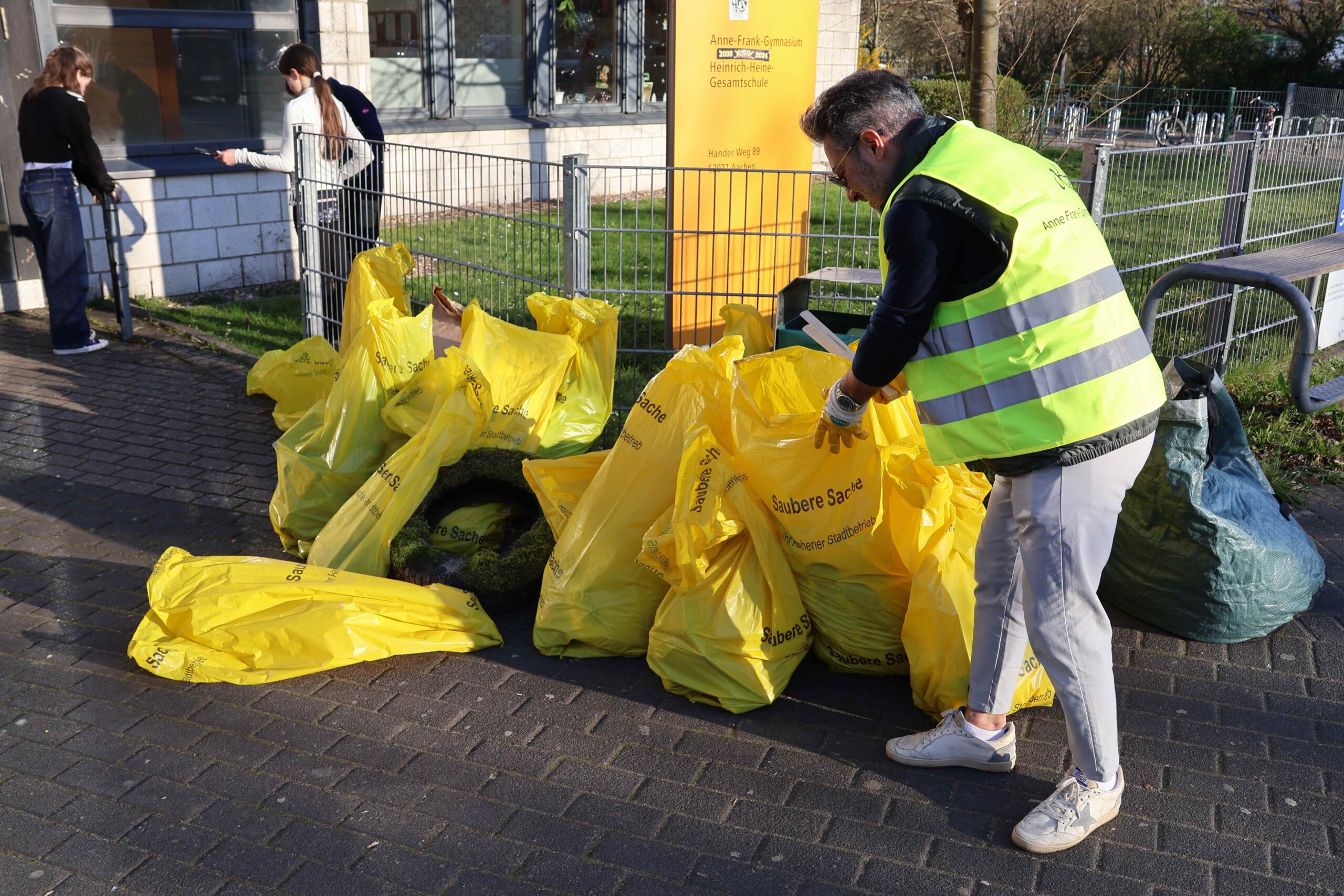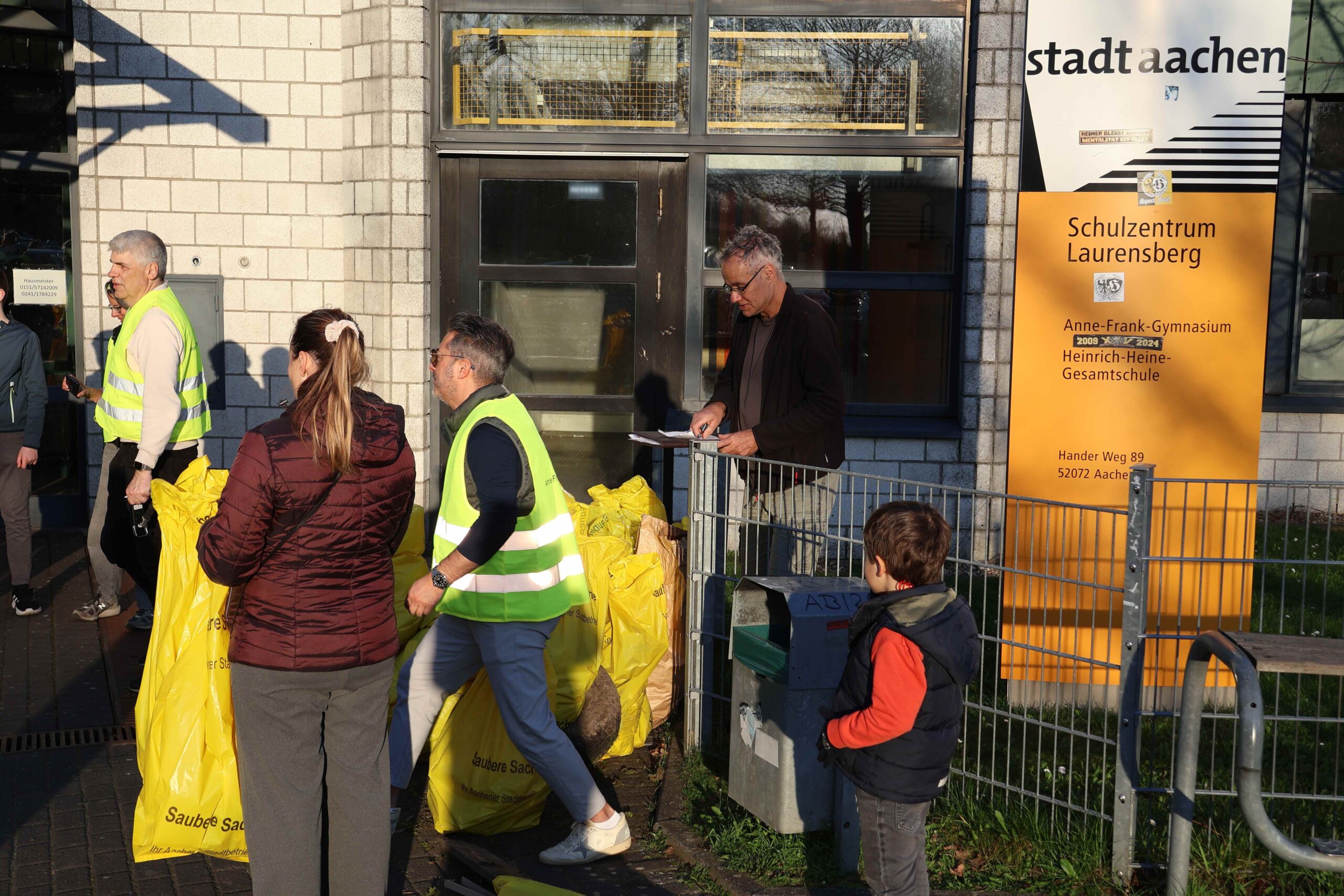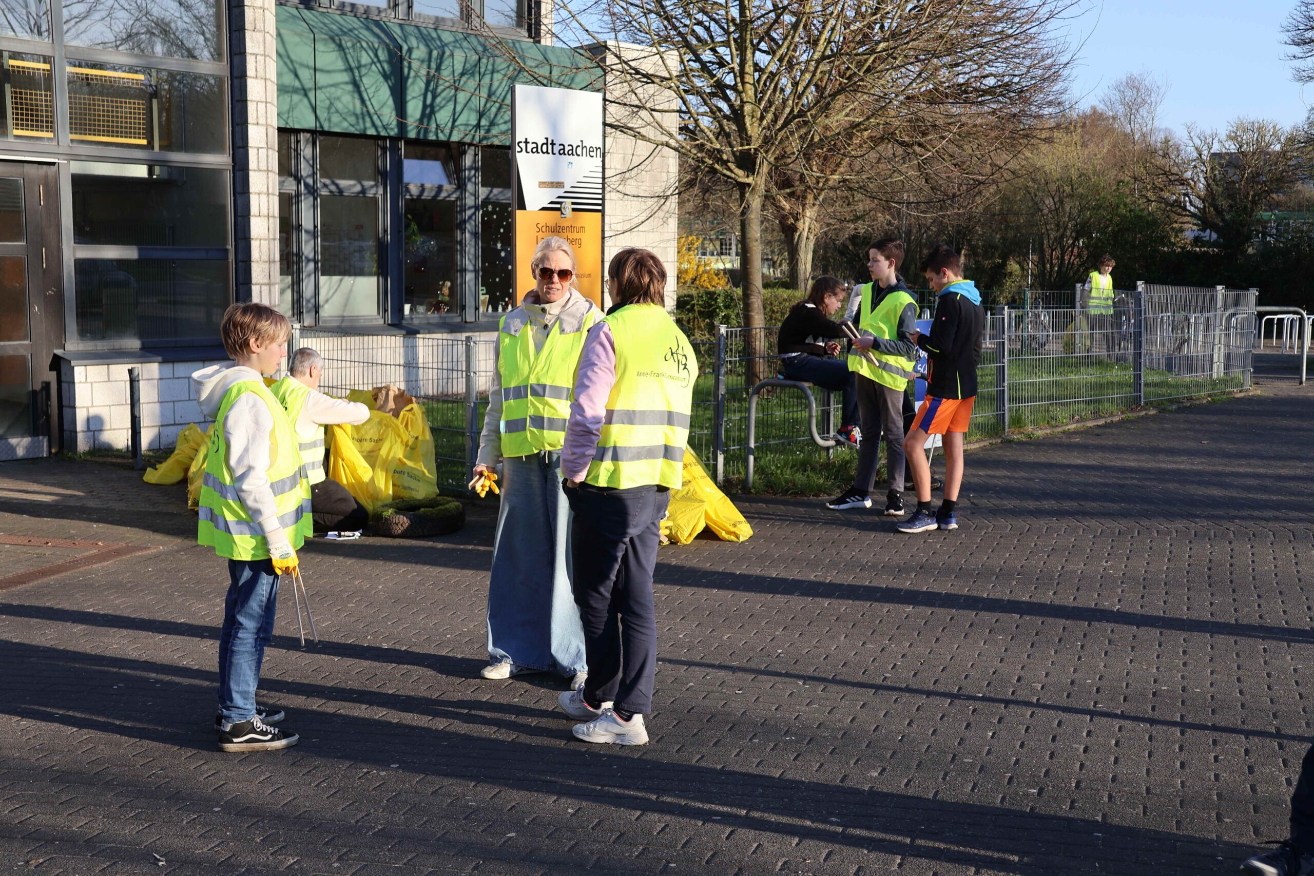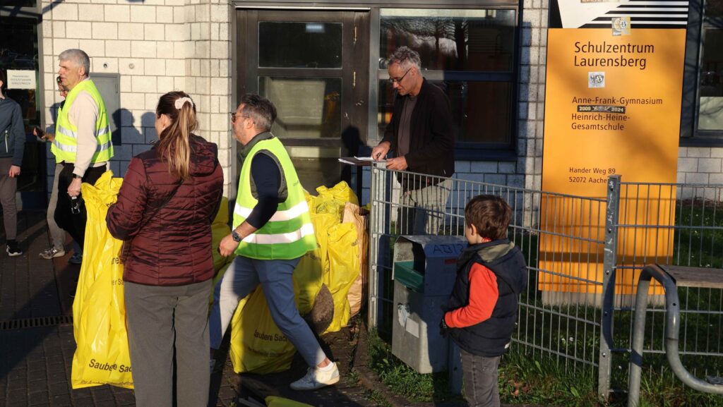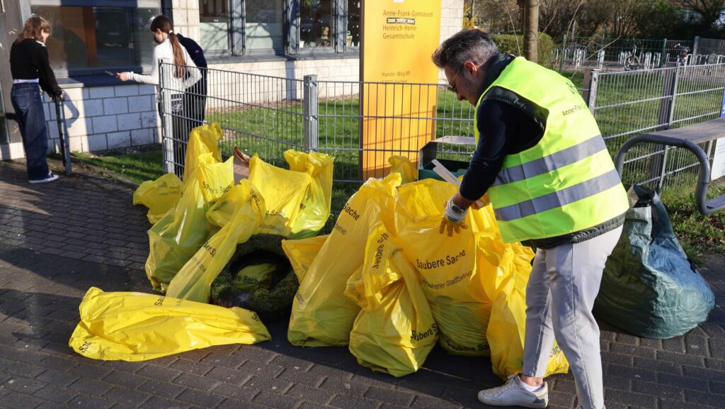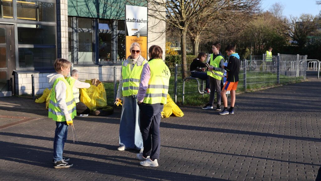 Wussten Sie, dass blaues und rotes Glas am Besten zum Grünglas und nicht zum Braunglas sortiert wird? Diese und andere Informationen zur Mülltrennung stammen aus dem digitalen Quiz, das anlässlich des diesjährigen Aachener Frühjahrsputz am AFG erstellt wurde. Die eigentliche Aufgabe war aber eine andere. Zwischen 50 und 60 Mitglieder der Schulgemeinschaft haben im Nachmittag des 18.3. wieder am Frühjahrsputz der Stadt Aachen teilgenommen und 115 kg Müll im Bereich des Schulgeländes und darum gesammelt. Die Aktion sorgte für Freude am gemeinsamen Handeln und ein sichtbares Ergebnis, wovon auch ein paar Fotos zeugen. Organisiert wurde sie wie in den letzten Jahren durch die Elternschaft. Wir danken allen ganz herzlich für ihren Einsatz!